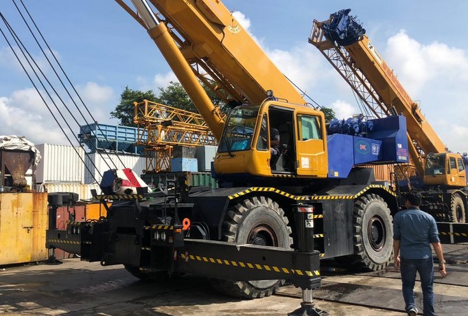 Unit rough terrain crane digunakan secara umum di proyek konstruksi, seperti pembangunan suatu jembatan untuk proyek sedang hingga besar.